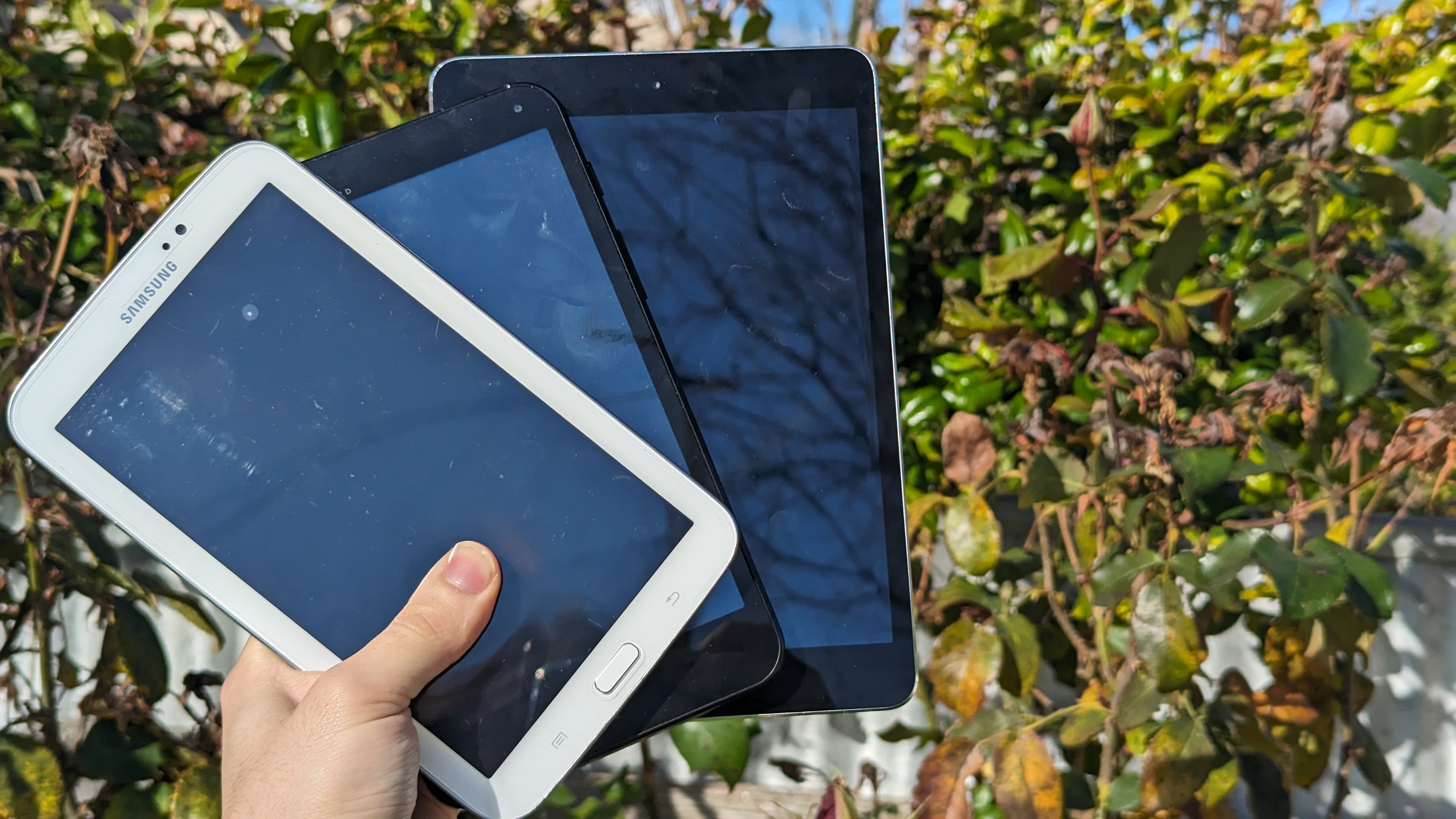 An example of the screens at full brightness while outside.