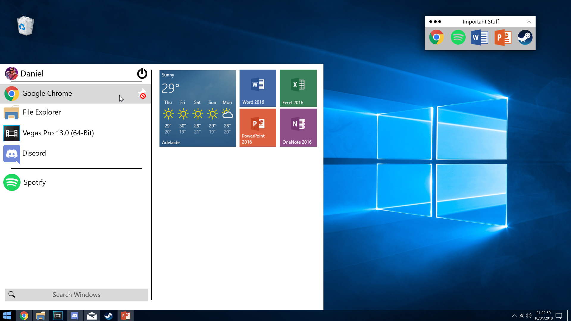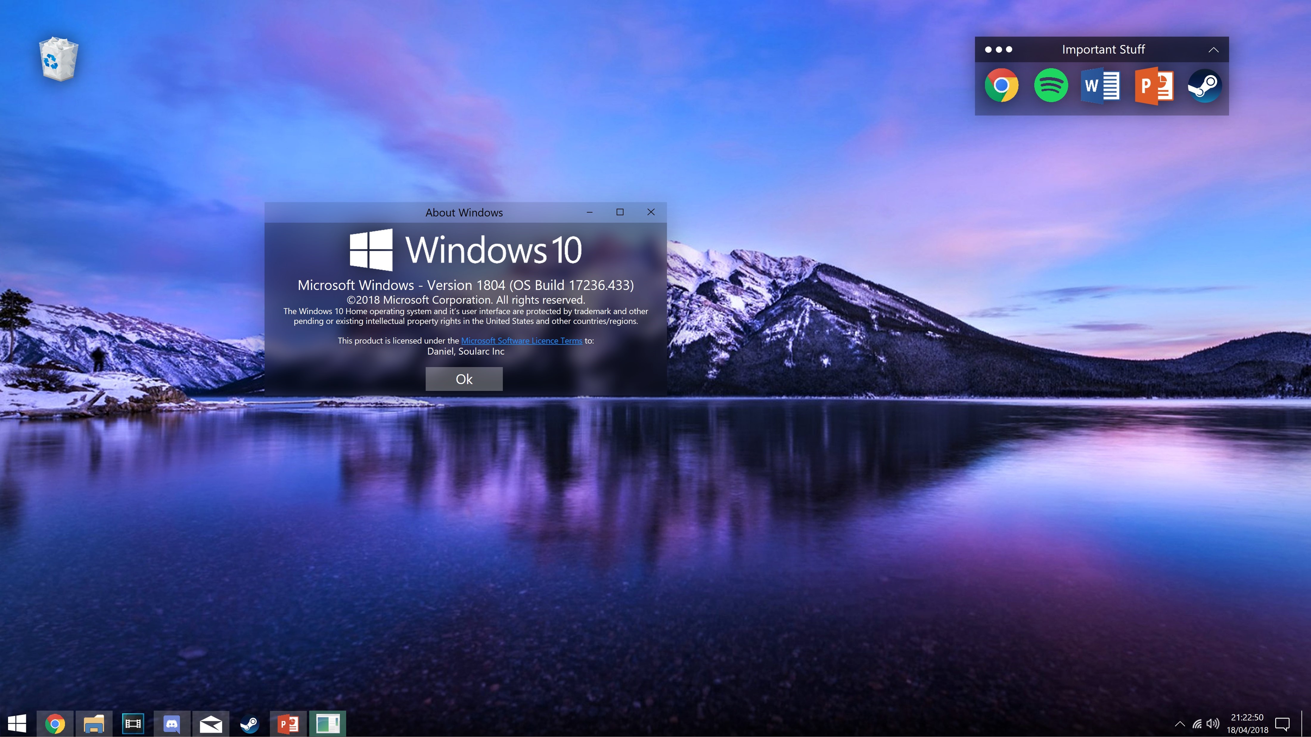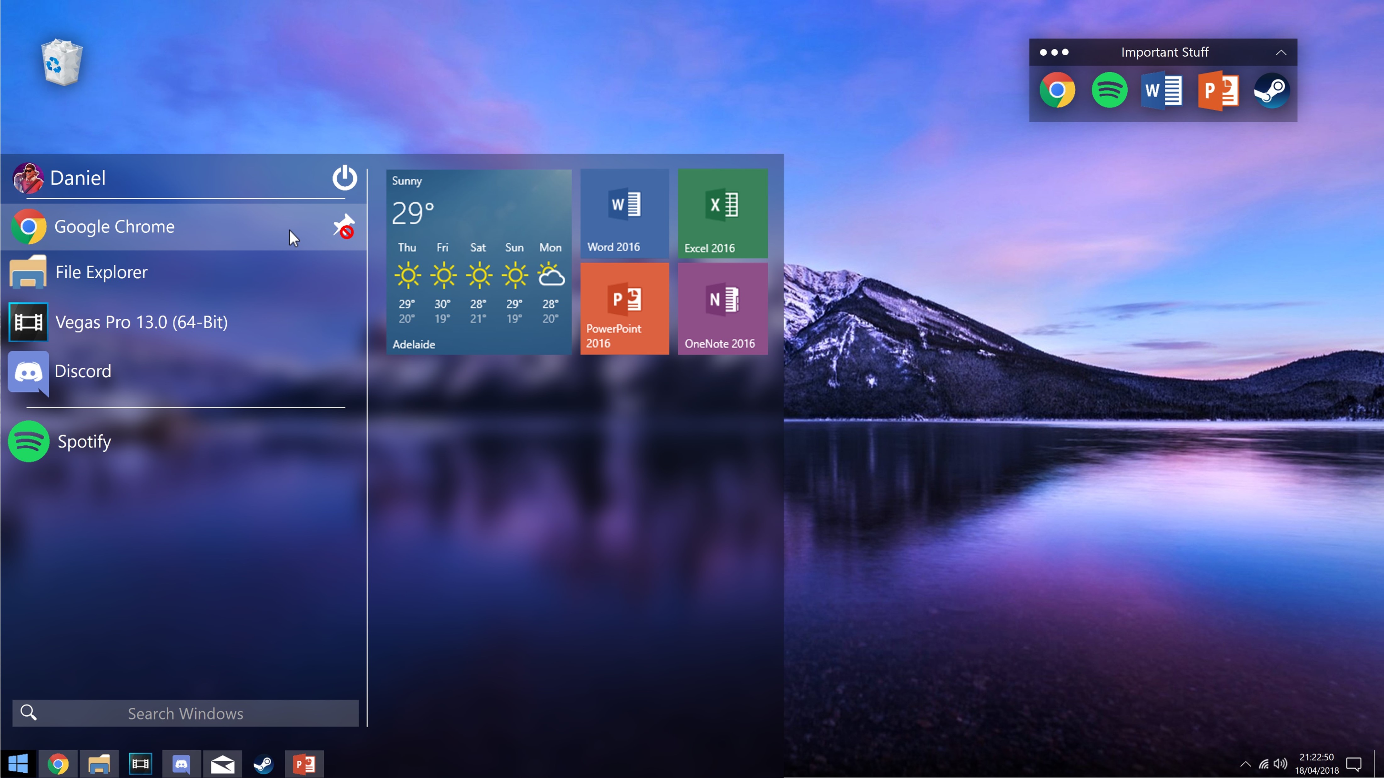 This is a Windows 10 UI Concept I made in early 2018 to add more transparency to Windows 10 and also to restore the Windows 8 taskbar. I made many different versions of this