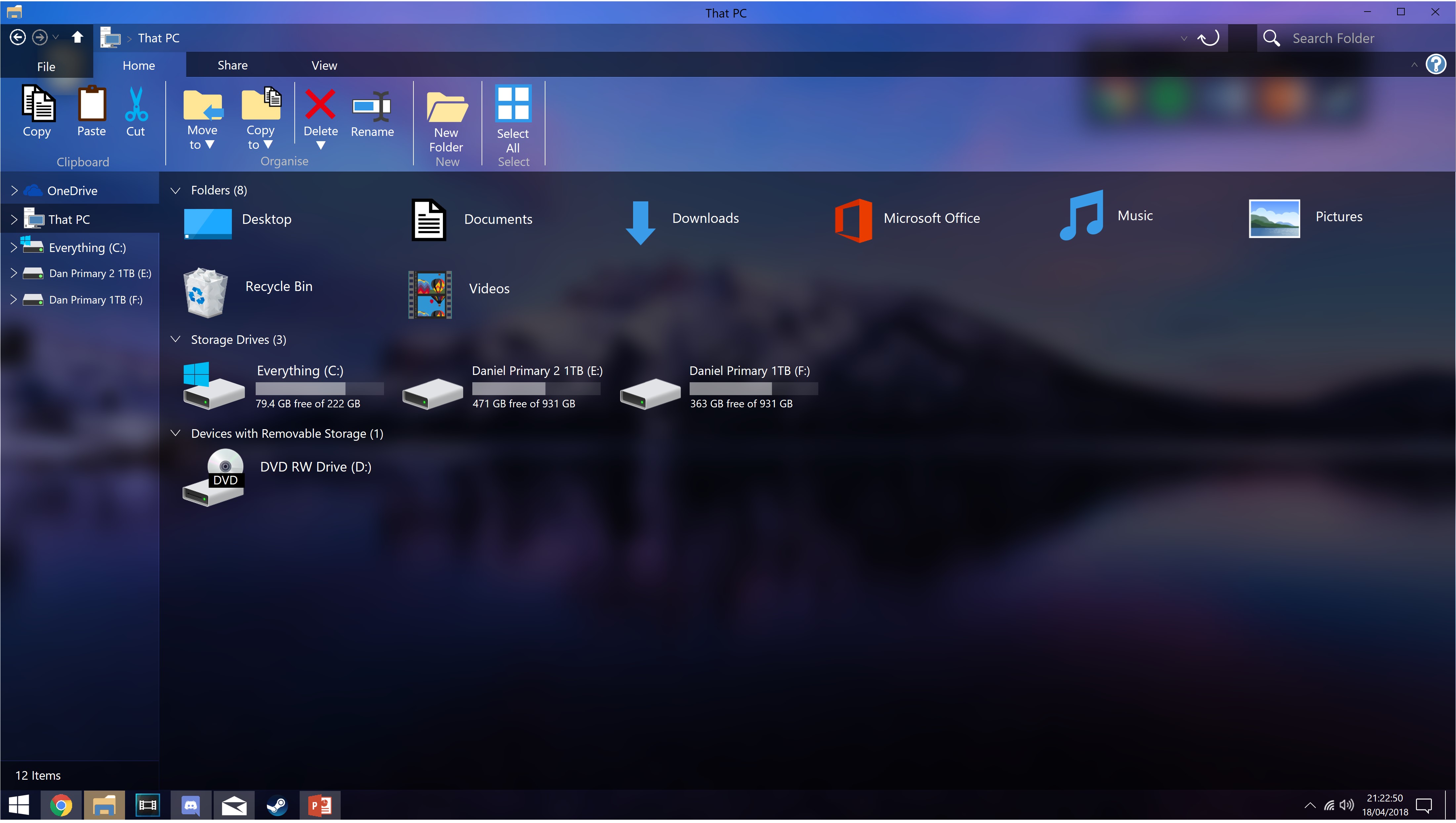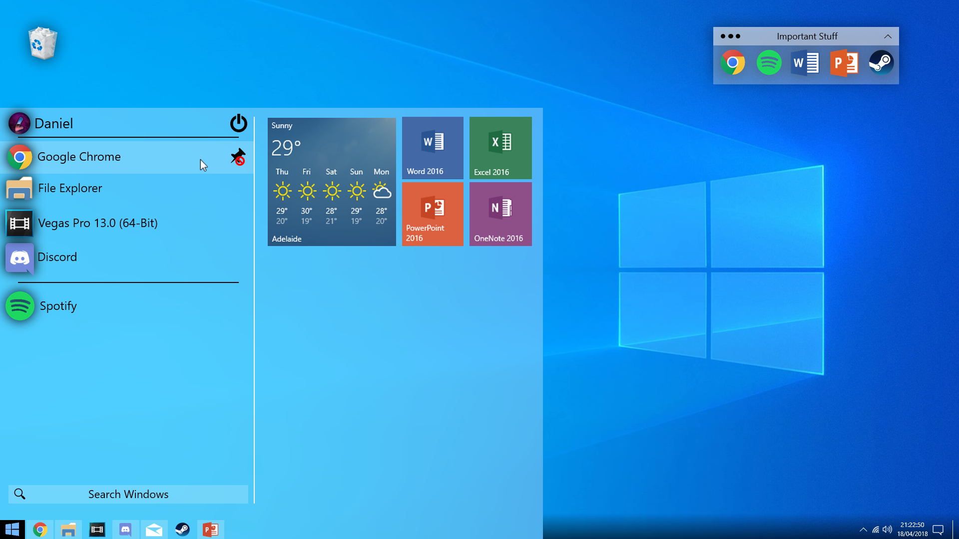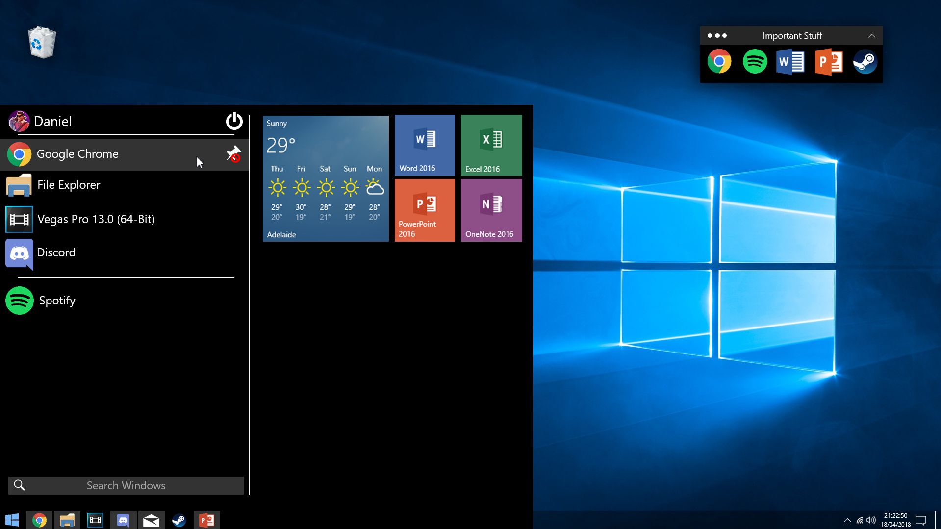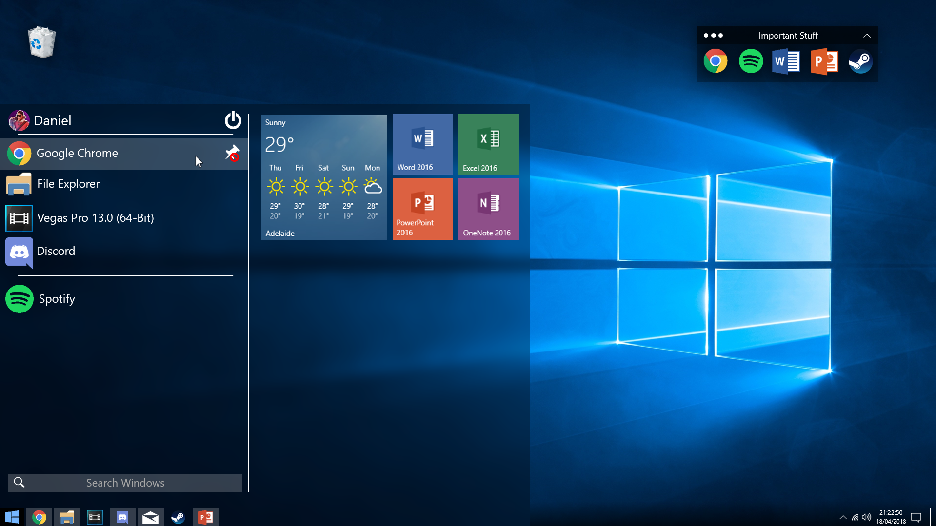 This is a Windows 10 UI Concept I made in early 2018 to add more transparency to Windows 10 and also to restore the Windows 8 taskbar. I made many different versions of this